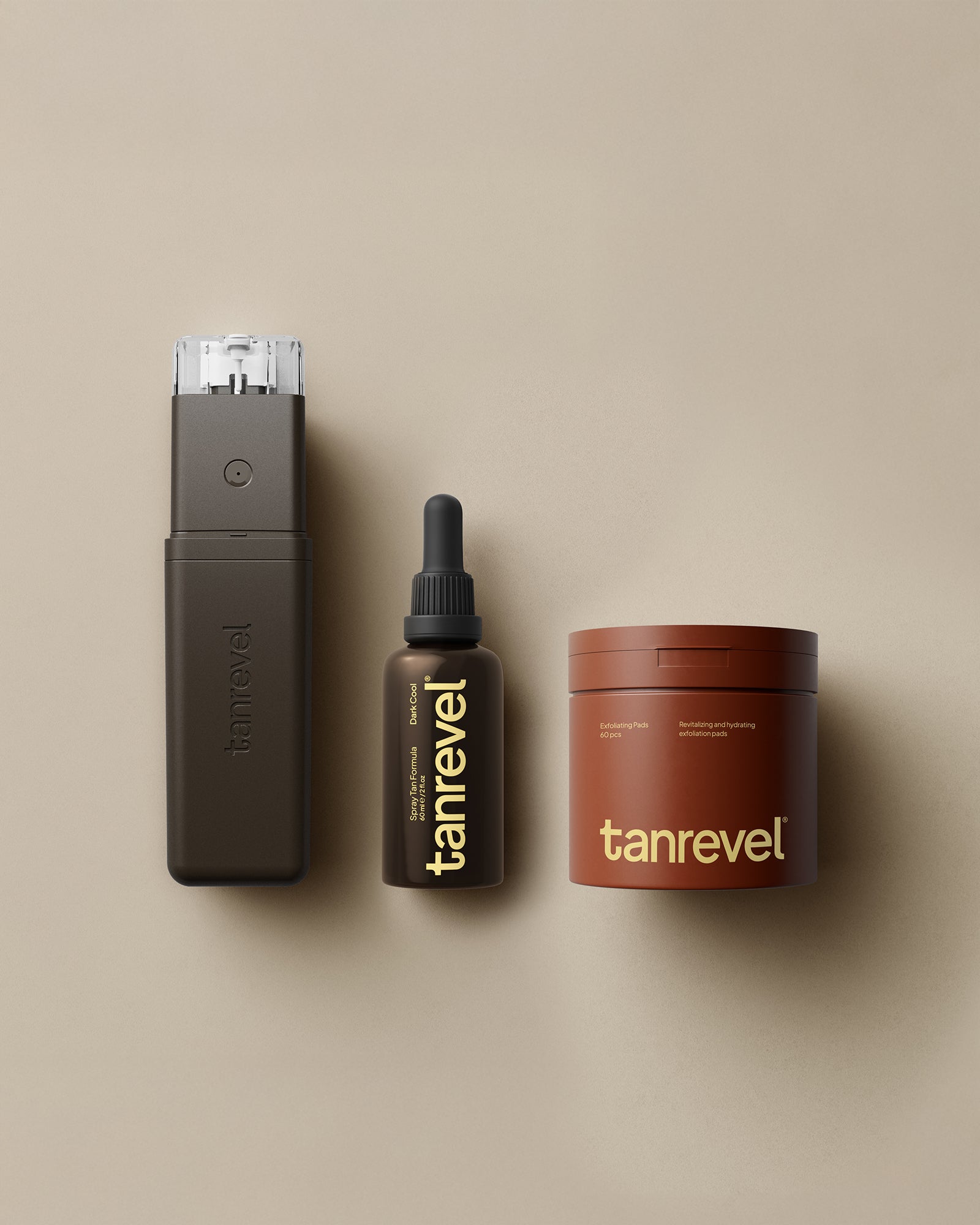 Consigue un look profesional en casa con Tanrevel® Prime & Tan Trio, tu kit perfecto para una piel suave, hidratada y uniformemente bronceada. Empieza tu rutina con las Exfoliating Pads, diseñadas para exfoliar y cuidar suavemente tu piel. Con una potente combinación de AHA, PHA y LHA, estas almohadillas estimulan la renovación celular, limpian los poros y mejoran la textura de la piel, creando la base perfecta para un bronceado uniforme y duradero sin sol. Enriquecidas con niacinamida, manzanilla, centella asiática, ácido hialurónico y aloe vera, calman, hidratan y suavizan la piel, al tiempo que refuerzan su barrera natural. Continúa con el Spray Tan Kit Pro, el autobronceador más vendido de Escandinavia, para conseguir un tono dorado natural en solo 60 segundos.